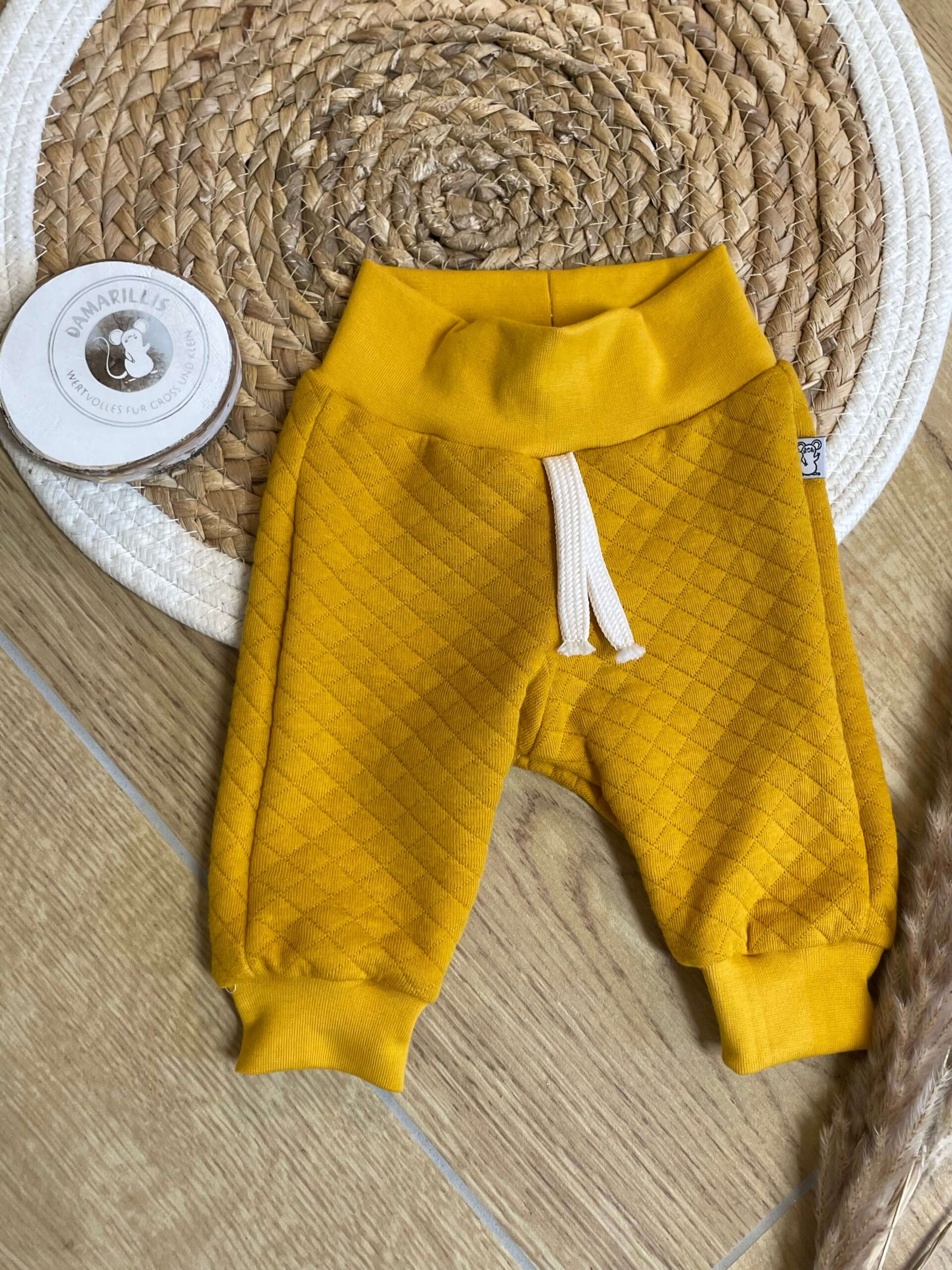 Kuschelhosen aus reinem Baumwoll Steppstoff. Die Baumwoll-Bündchen an Bauch und Beinen sitzen bequem und machen jede Bewegung mit, ohne einzuengen.